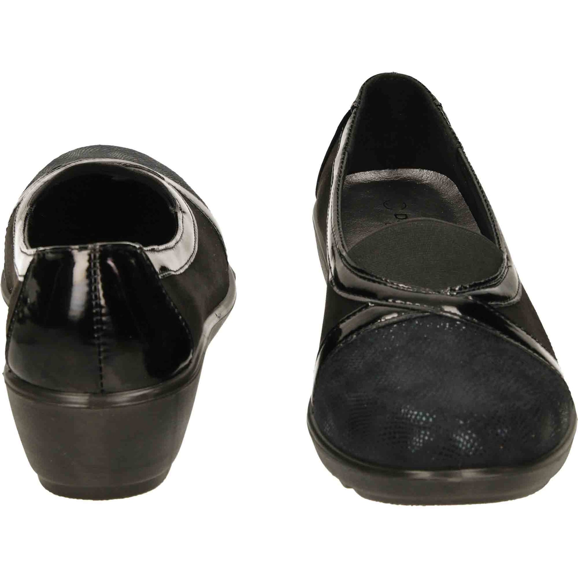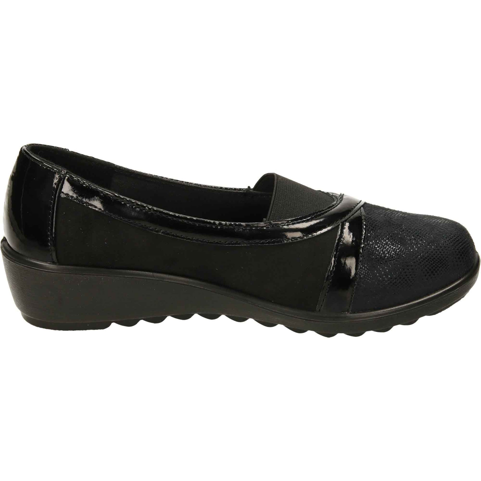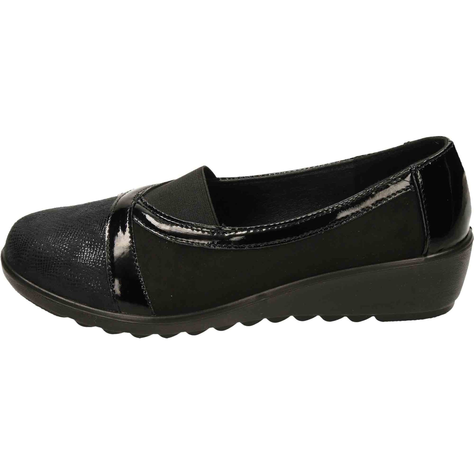 Black Patent Shoes Wide Fit Low Wedge Heel Slip On