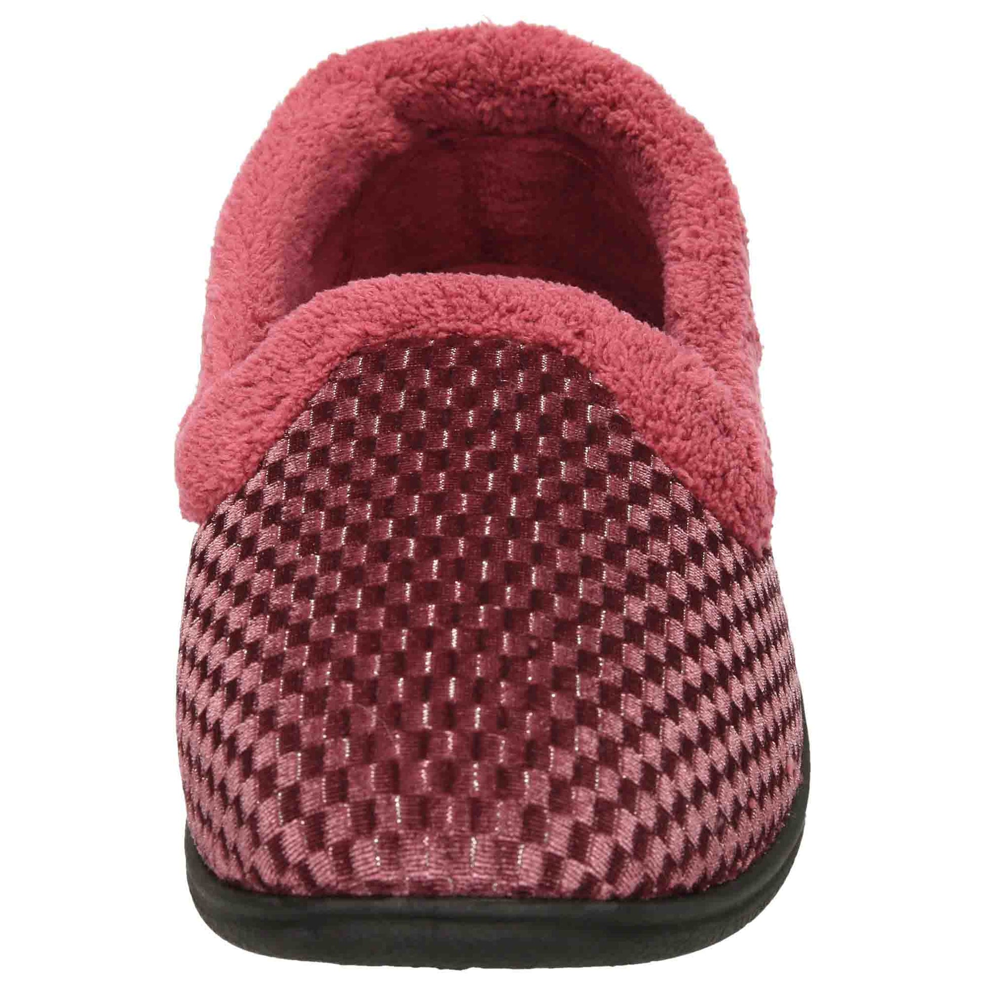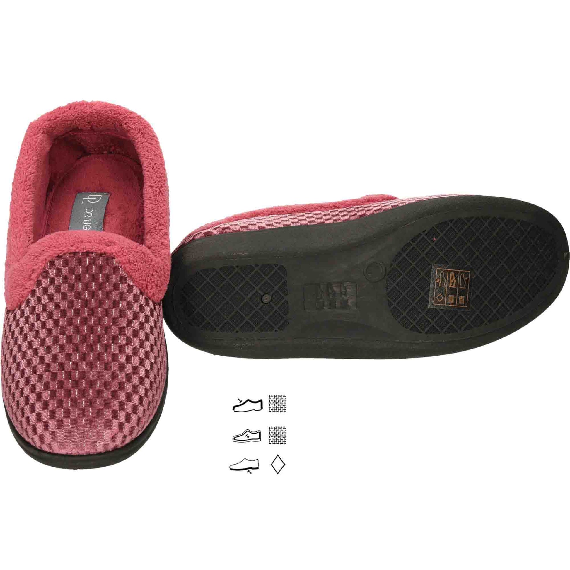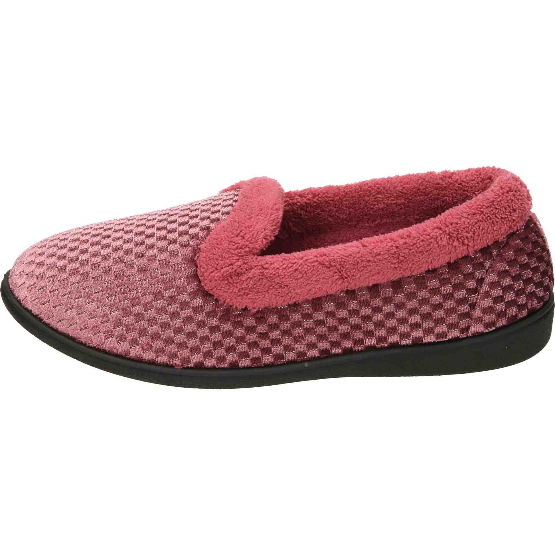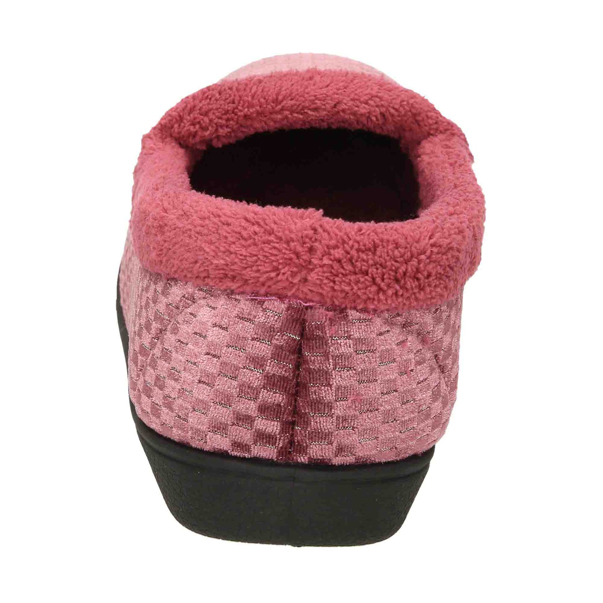 Ladies wide (E) fitting heather pink shimmer velour slippers