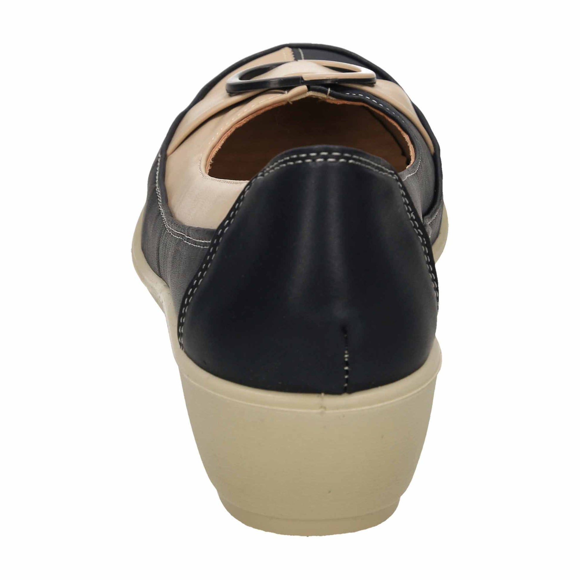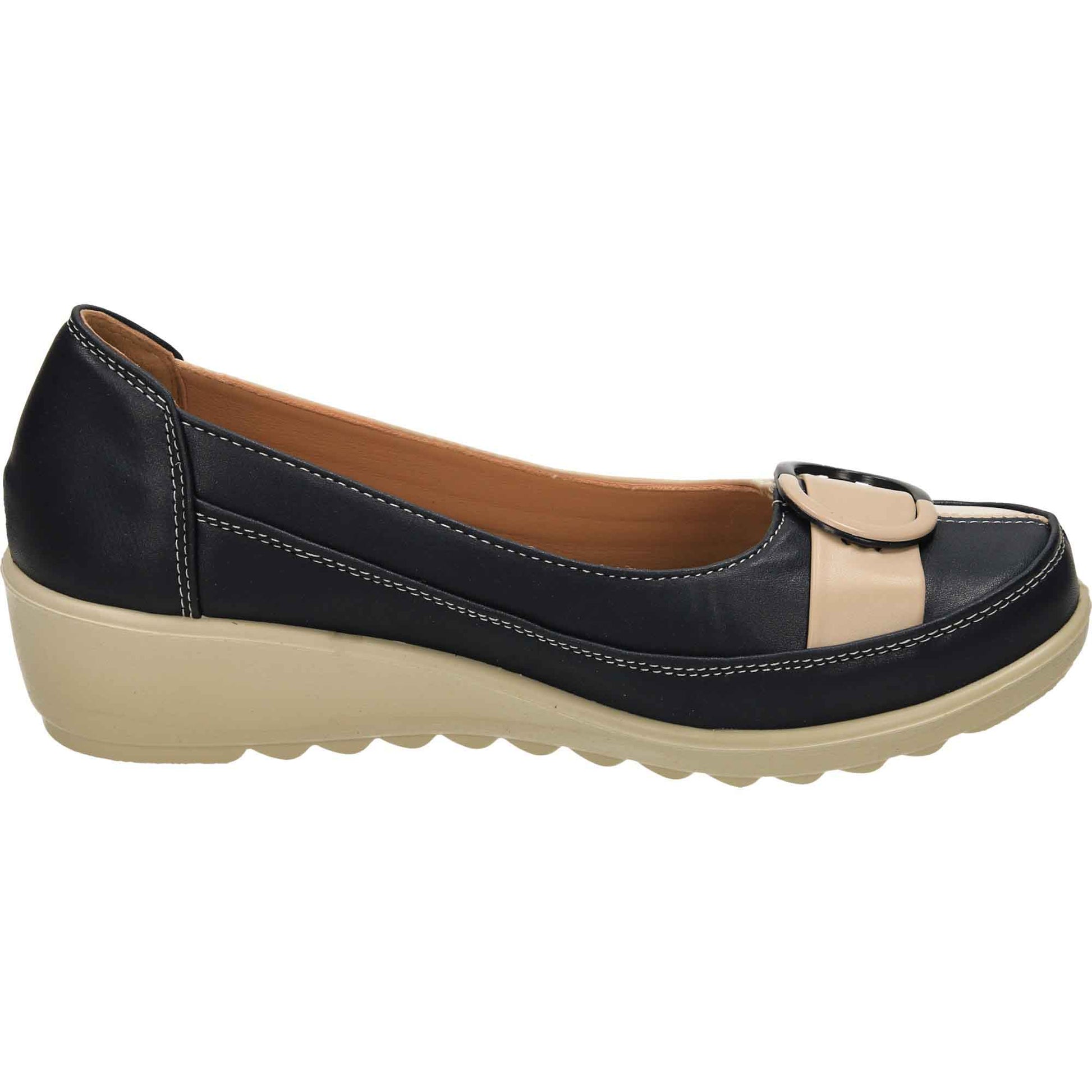 Ladies wide fit navy/beige low wedge heel shoes